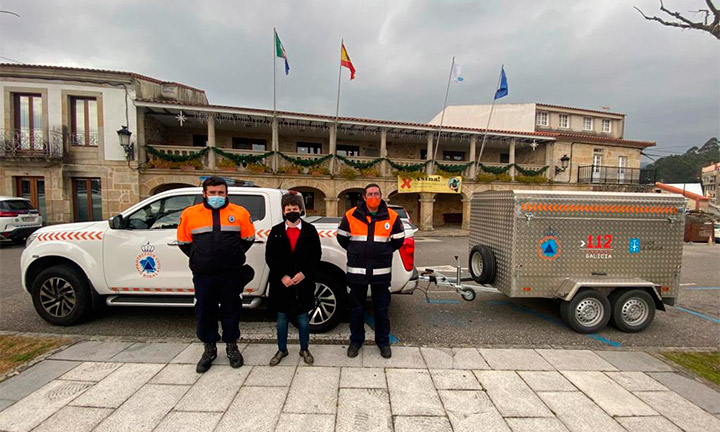 Membros da Agrupación de Voluntarios de Protección Civil do Rosal acudiron este martes 19 en Vilaboa acompañados polo concelleiro Germán Fernández para recoller o novo remolque entregado pola Xunta ao abeiro das subvencións para equipamentos de emerxencias. Trátase dun remolque con características especiais idóneo para intervencións nos incidentes provocados por inundacións e temporais e para desprazarse por aquelas zonas do Rosal que contan con rúas e vías máis estreitas.