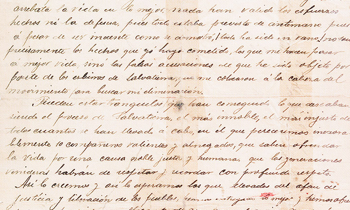 Cabe destacar aquí pensamentos que temos por escrito nunha carta que un deles, José Domínguez González, dirixe á súa noiva Angelina de Leirado: “Una circunstancia trágica me arrebata la vida en lo mejor. Nada han valido los esfuerzos hechos, ni la defensa, pues todo estaba previsto de antemano” “el proceso de Salvaterra el más innoble, el más injusto de todos cuantos se han llevado a cabo en el que pereceremos inexorablemente diez compañeros valientes y abnegados que saben ofrendar la vida por una causa noble, justa y humana”. E como remate algo que reflicte a forza mental e a dignidade destas persoas: “Nada hay tan vello ni tan sublime cuando se muere con la conciencia del deber cumplido”.