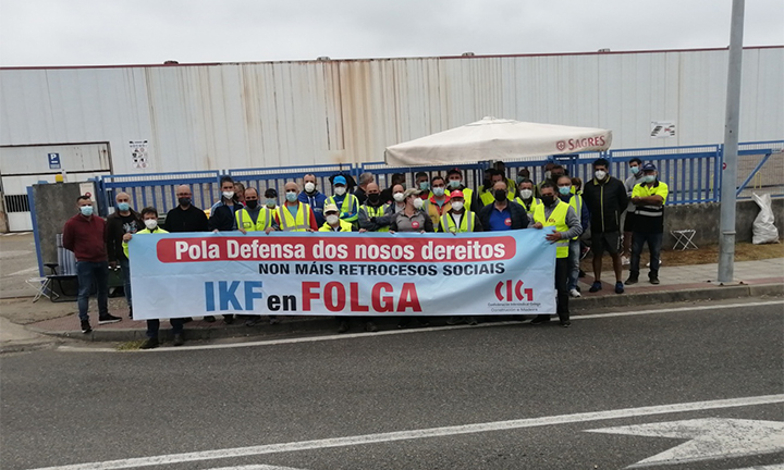 “A igual traballo igual salario “ é un axioma histórico nas loitas sindicais de todos os tempos. Porén seica estamos en tempos nos que cómpre dar a batalla para reivindicar o obvio. E que dúas persoas que fan o mesmo non cobren o mesmo é unha inxustiza flagrante. E ante as situacións inxustas só caben dúas actitudes posibles que son mirar cara a outro lado ou facer o que fan os traballadores e traballadoras desta empresa de A Guarda: a posición máis digna posible consistente en sacrificar espazos do benestar individual en prol de acadar o ben común. IKF é a empresa máis grande do concello de A Guarda e probablemente tamén das máis antigas pois non moitas empresas poden presumir de ter máis dun século historia. Na actualidade é propiedade dunha compañía francesa e os seus traballadores están en folga indefinida desde o 14 de xullo, agora desconvocada no mes de vacacións, pois a dupla escala salarial que a empresa negociara co anterior comité supón que as novas incorporacións cobren arredor de 5.000€ ao ano menos que as persoas que xa traballan alí. De momento esta situación só afecta a tres persoas pero nun dignísimo exercicio de solidariedade colectiva o 100% do persoal de produción secunda a folga. A primeira xuntanza entre a empresa e os representantes sindicais, celebrada o pasado 30 de xullo, rematou sen acordo. Estaremos pendentes dos acontecementos. Nós achegámonos ata A Guarda e falamos cos representantes do comité de empresa e co secretario da unión local da CIG desa localidade. Velaí vai o que deron de si ambas conversas.