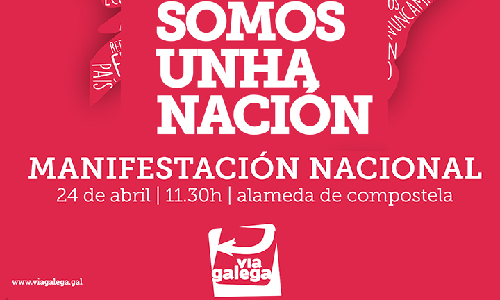 A Plataforma Vía Galega convoca a manifestación co lema “Somos unha nación” con saída o domingo 24 de abril ás 11:30 da alameda de Compostela cos obxectivos de crear máis conciencia nacional e de reforzar a autoestima colectiva como País.