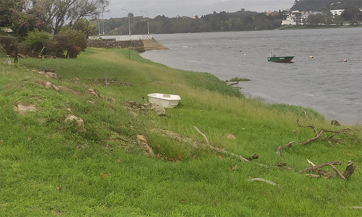 A avenida desemboca no río Miño, que lle ofrece ao visitante unha fermosa panorámica da ribeira e da veciña vila portuguesa de Vilanova, así como dunha praia fluvial, que conta ademais cun amplo espazo de recreo, e embarcadoiro. A contorna ten o complemento perfecto na fortaleza de San Lourenzo e o Pazo da Torre, cunha pequena capela no seu exterior.