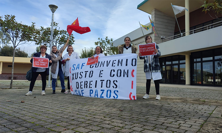 Na últimas semanas en distintos concellos da nosa área de influencia podemos apreciar concentracións de protesta de traballadoras do SAF, convocadas pola CIG a unha folga indefinida que comezou o pasado 2 de novembro. O motivo da protesta está nun pre acordo de convenio asinado por UGT e CCOO, este é o sindicato maioritario no sector, realmente asombroso pois pon negro sobre branco a aceptación da dupla escala salarial xa que as traballadoras de empresas que obteñan novas licitacións dos concellos veríanse beneficiadas por unha suba dun 3% mentres que as que traballen en empresas con licitacións xa consolidadas só verían incrementadas as súas nóminas nun ridículo 1%. É probable que cando este traballo vexa a luz esta folga xa estea desconvocada ou reducida á mínima expresión, por desgraza coido que non porque a patronal do sector atenda ás xustas razóns das mulleres que protesten senón porque o paro indefinido dun sector tan precarizado como este é practicamente imposible de manter durante moito tempo sen causar graves problemas ás propias traballadoras e por extensión aos usuarios e usuarias deste servizo que debera ser esencial en calquera sociedade artellada en funcións duns parámetros minimamente éticos. Pero o que nunca se pode desconvocar é a protesta contra a inxustiza nin a loita contra os abusos. E estas traballadoras que erguen a súa voz de protesta con dignidade teñen todo o noso apoio e solidariedade. Nós conversamos con Remedios e Nuria, dúas traballadoras do SAF de Pazos de Borbén e con Mercedes Domínguez responsable da área da muller da unión local da CIG no Porriño.