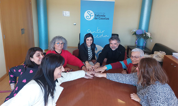 A alcaldesa de Salceda, Verónica Tourón, e o alcalde de As Neves, Xosé Manuel Rodríguez, mantiveron xunto coas concelleiras de Servizos Sociais de ambos concellos, Angela Ledo e Pilar González, unha reunión para renovar o compromiso de prestación conxunta do servizo de atención temperá e avaliar o impacto deste servizo na poboación.