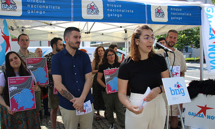 Lugo, 24 de xuño de 2023. O cabeza de lista do BNG ao Congreso por Lugo, Daniel Castro, presentou xunto coa secretaria xeral de Galiza Nova, Marta Gómez, a campaña que levará por toda Galiza a mensaxe do BNG e de Galiza Nova. Unha furgoneta, xunto con unha mesa informativa, perocorrerá as diferentes localidades do país e visitará as principais vilas e cidades. A viaxe chegou a Lugo cando se celebra na cidade a festa do Arde Lucus. Estiveron presentes as e os concelleiros do goberno de Lugo encabezados polo Tenente Alcalde, Rubén Arroxo, parlamentarias galegas como Olalla Rodil e futuros representantes na Deputación como a edil de Castroverde Iria Castro. Tamén acudiron ao acto cargos orgánicos do BNG e Galiza Nova.