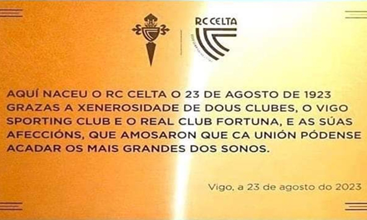 O pasado 23 de agosto o equipo de fútbol do Celta de Vigo cumpría 100 anos de vida. Para celebraren o seu primeiro século de existencia , entre outras cousas, colocaban unha placa na actual Biblioteca Compañel, no casco vello vigués, pois seica foi alí onde se formalizou o seu nacemento.
