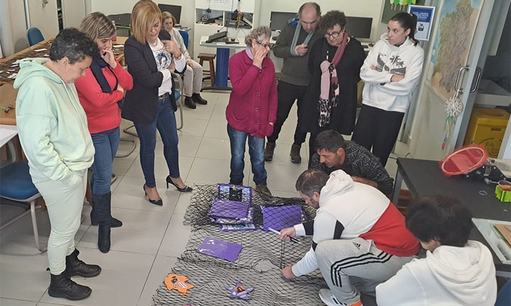 No acto central do próximo día 8 a veciñanza de Redondela terá un papel protagonista. O departamento que dirixe Iria Vilaboa repartiu redes de pesca entre centros de ensino, colectivos e asociacións. Cada entidade decorou estas mallas “con diferentes elementos relacionados co 8M, o papel da muller na sociedade e a importancia da igualdade real entre homes e mulleres”, explica Vilaboa. Desde hoxe mesmo os usuarios e usuarias do Centro Ocupacional Lenda están a encargarse de unir todas esas nun gran tapiz que será protagonista do acto institucional que se celebre na praza do Concello o Día Internacional da Muller. Seve Casal, mariñeiro da Confraría de Redondela e membro de Amarturmar, foi o encargado de ensinarlles a técnica. “A colaboración entre diferentes entidades e asociacións do municipio e co propio Concello é o que nos permite que esta data sexa realmente participativa, e que a sociedade sexa a protagonista, ese é o noso obxectivo”, sinala a alcaldesa Digna Rivas. O próximo día 8, ás 12.00 horas, mulleres e nenas de diferentes centros, colectivos e asociacións participarán no acto oficial coa lectura do pregón e a colocación destas “redes pola igualdade”.