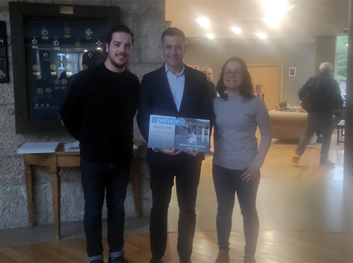 Na conversa que mantivemos con Ricardo Fuciños, director do Balneario de Mondariz, díxonos que ao seu xuízo un proxecto empresarial ten que devolver parte da confianza que recibe. O seu criterio e o meu son neste aspecto idénticos. Un proxecto empresarial non podería existir sen a confianza dos seus clientes e clientas. A Nova Peneira, alén das obvias connotación políticas do compromiso na defensa do país galego, dos seus sinais de identidade e da práctica de políticas sociais que permitan que todas as persoas poidamos vivir con dignidade , é un proxecto empresarial que agradece inmensamente a confianza que lle dan os seus lectores e lectoras. De aí o noso concurso anual co que premiamos aos que antes resolvan o encrucillado do mes de xaneiro. Buscamos fomentar o interese polo idioma galego, e devolver un anaco da confianza que recibimos. Gustaríanos premiar a todas e cada unha das persoas que nos distinguen coa súa compañía, algo que por desgraza non é posible,e facémolo de maneira metafórica nas persoas dos afortunados gañadores deste premio. En pasadas edicións premiamos a Segundo, Carme, Suso, Mar e David. E desta volta grazas á xenerosidade do Balneario de Mondariz, coa implicación persoal destacada do seu director que nunca me cansarei de agradecer, premiamos a Hadrián e a Rocío. Eles son os gañadores do noso concurso 2024, e eles gozaron dunha noite nas marabillosas instalacións dun dos establecementos que son sinais de identidade do país galego. Aproveitando a súa entrada achegámonos ao Balneario a conversar con eles alén de co director do hotel e co alcalde da vila, que tiveron a xentileza de acompañar e darlle os parabéns aos afortunados gañadores.