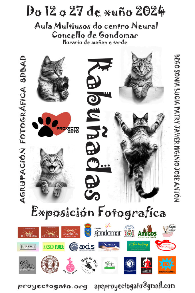 A exposiciòn contarà con 30 fotos dalgúns dos nos@s gat@s do refuxio, doadas pola agrupación fotográfica 8DBAD (representante Antòn, 674 14 28 93).