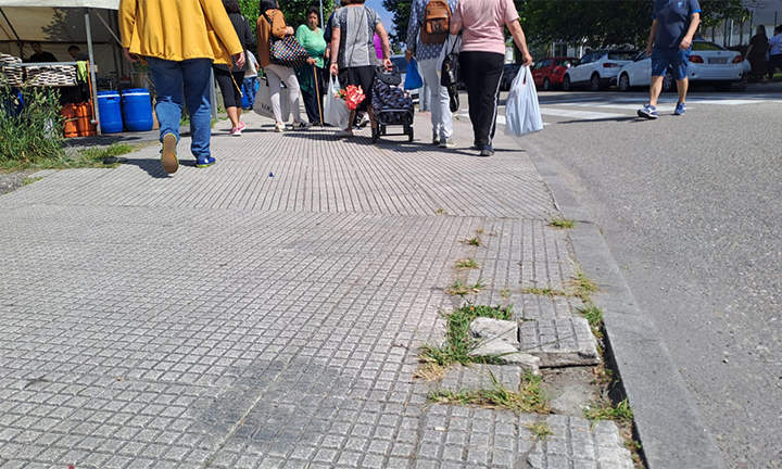– O mal estado das beirarrúas na avda Mendiño obrigou ao Concello a renovar no último ano máis de 500 lousas do pavimento que estaban rotas, para evitar riscos para os peóns, malia non ser unha competencia municipal.