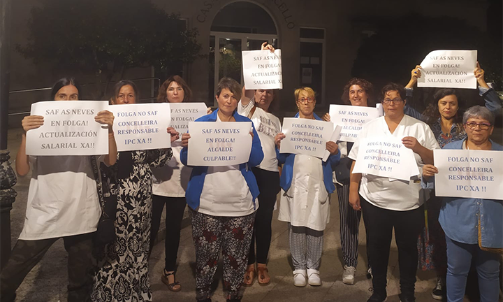 A asemblea de traballadoras do Servizo de Axuda no Fogar (SAF) do Concello das Neves decidiu convocar sete xornadas de folga e mobilizacións no mes de setembro para denunciar que o Goberno local incumpre o seu compromiso de actualizar os salarios e que vén de aprobar un prego de condicións para licitar o servizo cun prezo insuficiente. Dende a CIG sinalan que a débeda co conxunto do persoal do SAF das Neves supera neste intre os 30.000 euros, unha media de 1900 euros por traballadora a xornada completa.