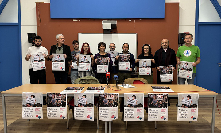 A plataforma cidadá Queremos Galego convocou esta mañá en rolda de prensa un gran acto abertoa todas as entidades e persoas interesadas na defensa da lingua o vindeiro 17 de novembro en Compostela, baixo o lema Mudemos o rumbo. Polo futuro do galego. Esta mobilización responde aos datos do IGE, que -en palabras do seu voceiro, Marcos Maceira- “certifican a emerxencia linguística extrema que vive a nosa lingua, como consecuencia de non se ter actuado sobre a expulsión e exclusión do galego de todos os ámbitos da vida social”.