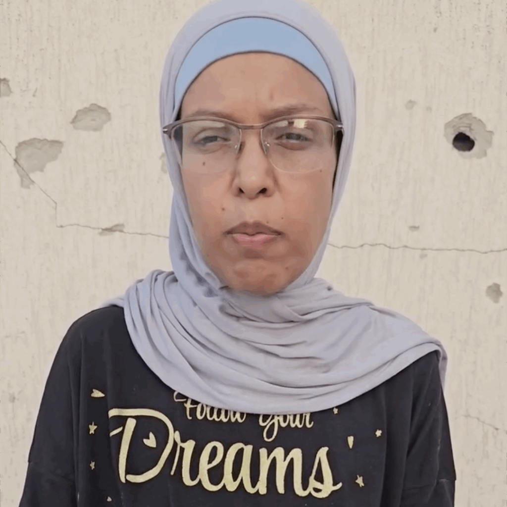 Destruíron o seu fogar en Khan Yunis e todo o seu barrio. Primeiro bombardeárono e logo queimárono. Desprazáronos cinco veces cara a Rafah e volta.