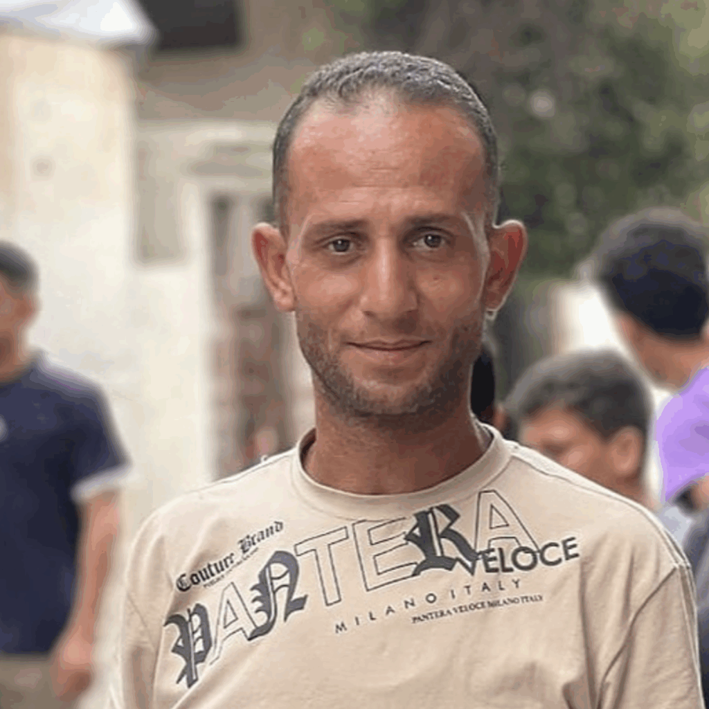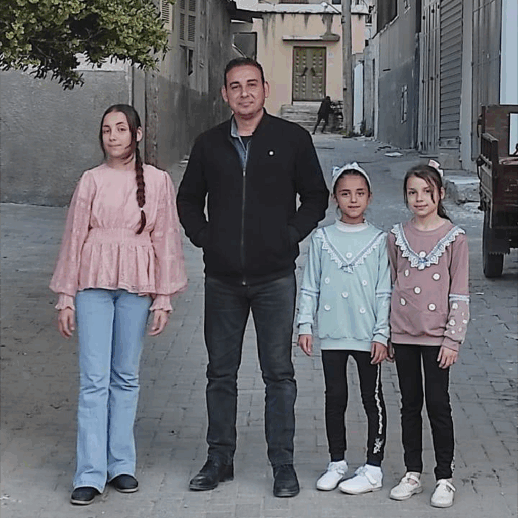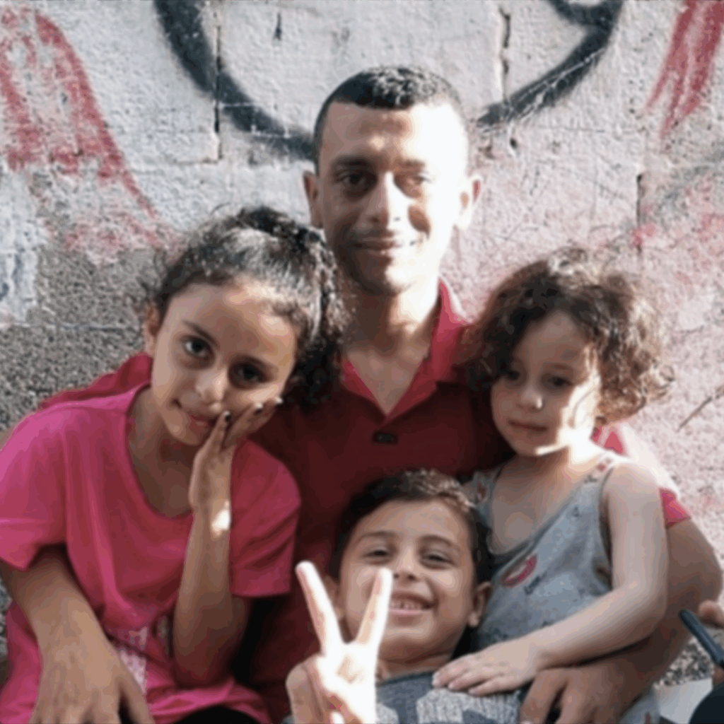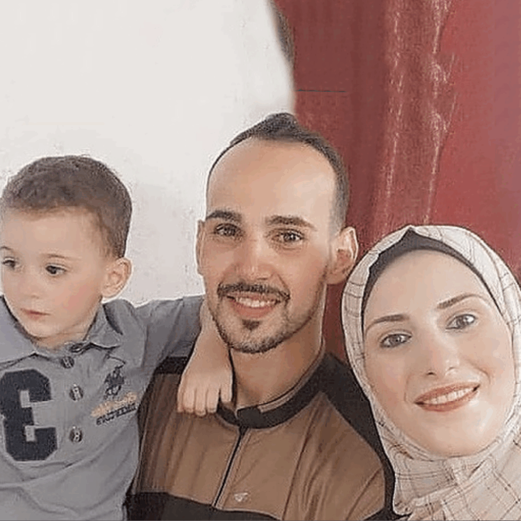 Ten 29 anos, a súa esposa é Shaima, son pais de 2 nenas, 1 neno e unha bebé de 2 anos. A súa filla Shouruq acaba de ser diagnosticada de desnutrición severa, necesita tratamento.