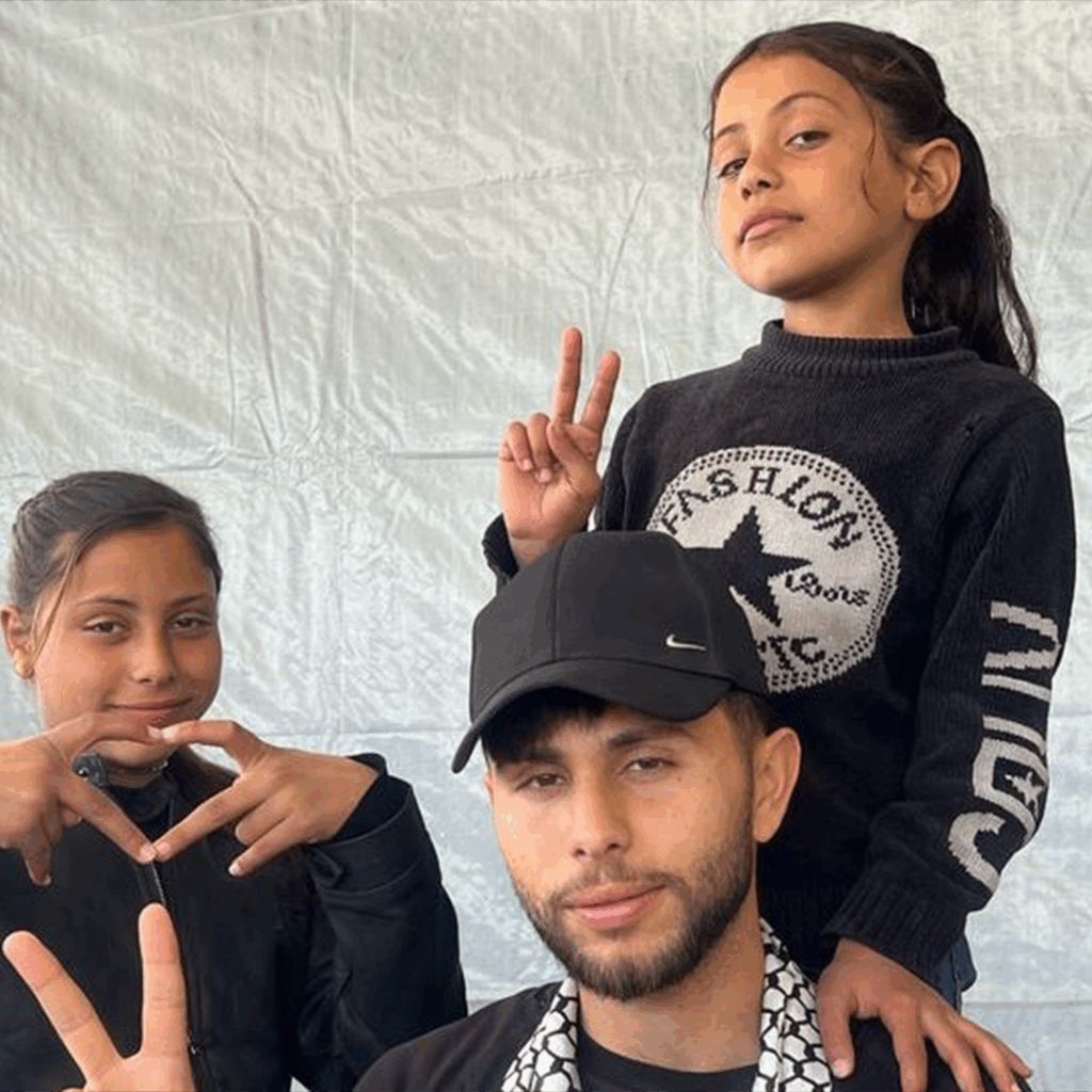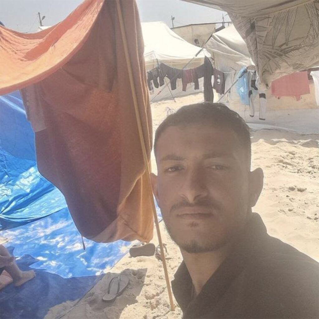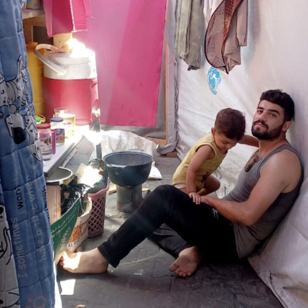 Foron desprazados desde Kan Yunis a Rafah desde o inicio dos bombardeos. Vivían alí nunha tenda de campaña pero os desprazaron de novo.
