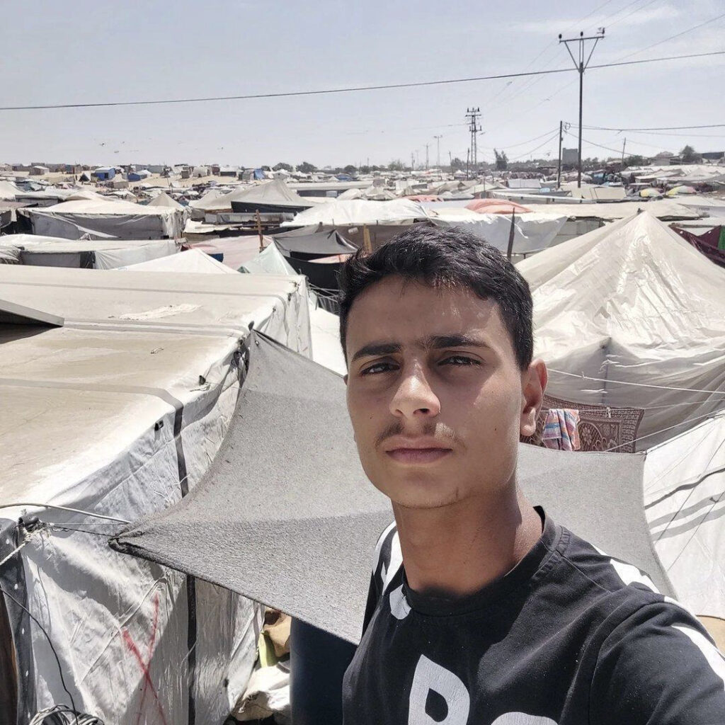 Oday é un mozo de 22 anos que un día foi a por pan e cando estaba a volver a casa escoitou como estalaban 3 bombas e que o son viña de onde vivía, así que foi correndo e atopouse que a súa casa voara con toda a súa familia dentro, os seus pais e os seus 6 irmáns…. entrou en shock, entrou nun coma que durou 15 días nos que estivo no hospital, cando espertou confirmáronlle o falecemento de toda a súa familia e que se quedou só, non emitiu nin un só son en 10 días, cando comezou a falar saíu do hospital sen saber onde ir nin que facer, non tiña nada nin a ninguén, despois de 1 mes, o exército de ocupación entrou en Beit Lahia ao Norte de Gaza, a zona onde vivía e ordenaron a todo o mundo que se desprazasen cara ao Sur, Leva desde ese momento buscándose a vida e vivindo nunha tenda de campaña. Necesita diñeiro para o máis urxente, auga e comida e saír de Gaza.