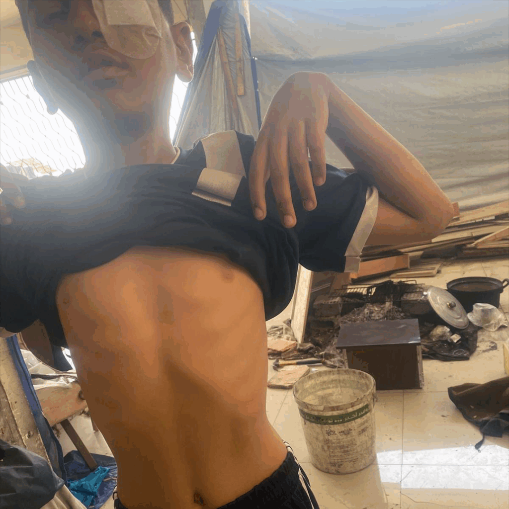 No último bombardeo feriron de gravidade ao seu irmán e á súa nai. Operáronos na sanidade pública, pero necesitan máis operacións que ten que facer pola privada ou mellor sería fóra de Gaza.