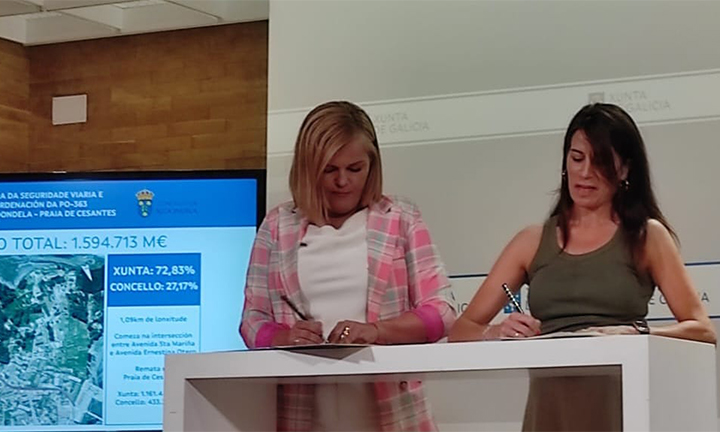 A alcaldesa do Concello de Redondela, Digna Rivas, e a conselleira de Infraestruturas, María Martínez, asinaron en Santiago o convenio de colaboración entre a Xunta de Galicia e o Concello para a mellora da avenida Mendiño. A Xunta estima que o importe das obras será de 1.594.713 euros. Segundo o acordo o Concello asumirá o 30% do custo na reforma, un mínimo de 433.269 euros. O acordo obriga tamén ao Concello a redactar o proxecto, licitar e executar as obras. A Xunta de Galicia asumirá o 70% restante do importe, cun máximo de 1.161.444 euros, e traspasará ao Concello a titularidade da avenida Mendiño antes de que se adxudiquen as obras. Do mesmo xeito, o Concello terá que asumir “todos os gastos das obras que excedan a cantidade estimada”. A alcaldesa, Digna Rivas, afirma que o Concello acabará asumindo un custo “moi superior” polos traballos, xa que segundo avanzan os técnicos municipais “o orzamento das obras superará amplamente os 1,6 millóns”.