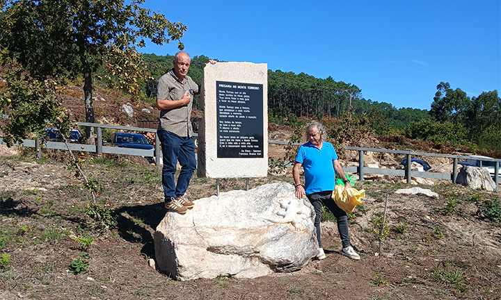 Na parte máis elevada do monte foi inaugurado un monumento que levaba gravado un poema de Koki, o grande poeta do Baixo Miño. Nas súas emotivas palabras Koki, non se podía esquecer de Palestina e, apelou a exercermos a solidariedade activa e continua ata que o estado xenocida de Israel cese dunha vez de asoballar ao pobo palestino.