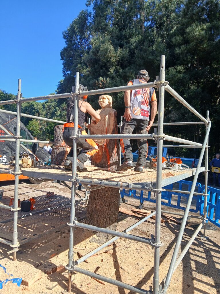 O indiscutible éxito da celebración do ano 2024, levou a que a xunta directiva da Comunidade de Montes apostase por darlle unha dimensión máis grande á festa deste ano. Tanto é así que foron dous días,o ano anterior foi un só día de festa, ateigados de todo tipo de actividades, música,poesía, xogos… Neste sentido quixera salientar o concurso de escultura en Pedra no que participaron algúns dos máis importantes canteiros do país. Todos os participantes desenvolveron obras de enorme calidade, e estou seguro de que o xurado non o tivo nada doado para escoller ás tres esculturas premiadas, que poden ver na imaxe que figura na parte inferior desta reportaxe. Dámoslle os merecidos parabéns a todos os artistas que nos deleitaron co seu talento, e dámosllos un pouquiño máis especiais ao noso colaborador, Marcos Escudero, gañador do segundo premio coa escultura que aparece na parte superior dereita da imaxe.