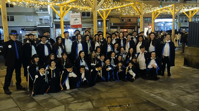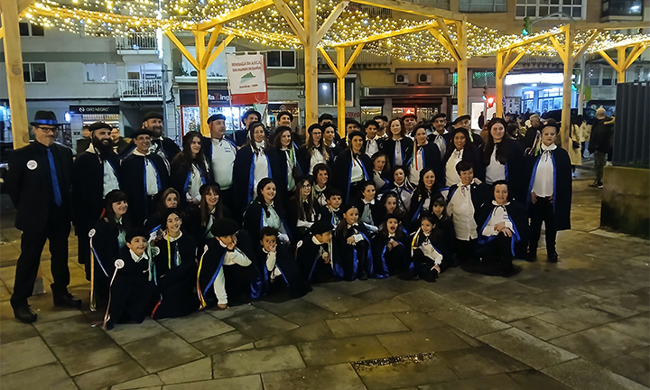 E así o amosaron os homes e as mulleres desta Rondalla o pasado dous de xaneiro cando arredor de medio centenar dos seus compoñentes acudiron todos xuntos, comandados polo seu director Xosé Manuel Fernández “ Muxicas” aos Cines Norte de Vigo , vestidos co traxe da Rondalla, a contemplar a película “Rondallas” do director madrileño Daniel Sánchez Arévalo estreada na carteleira o primeiro día deste ano 2026 .