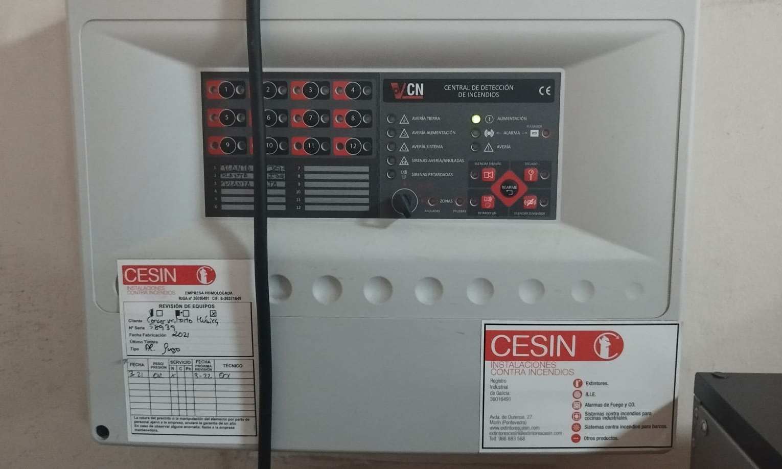 Ademais, este edificio, moi antigo e que precisa da súa substitución por un novo, tamén presenta un importante afundimento na sala de audición, que ademais está acordoado de xeito irregular por unhas cadeiras; humidades no teito; o sistema antilumes sen revisar desde o ano 2022; e incluso o oco dun enchufe que ardeu a principios de ano e que está simplemente protexido por unha rexiña, o que pode ser un risco ante a entrada de auga que padece o edificio.