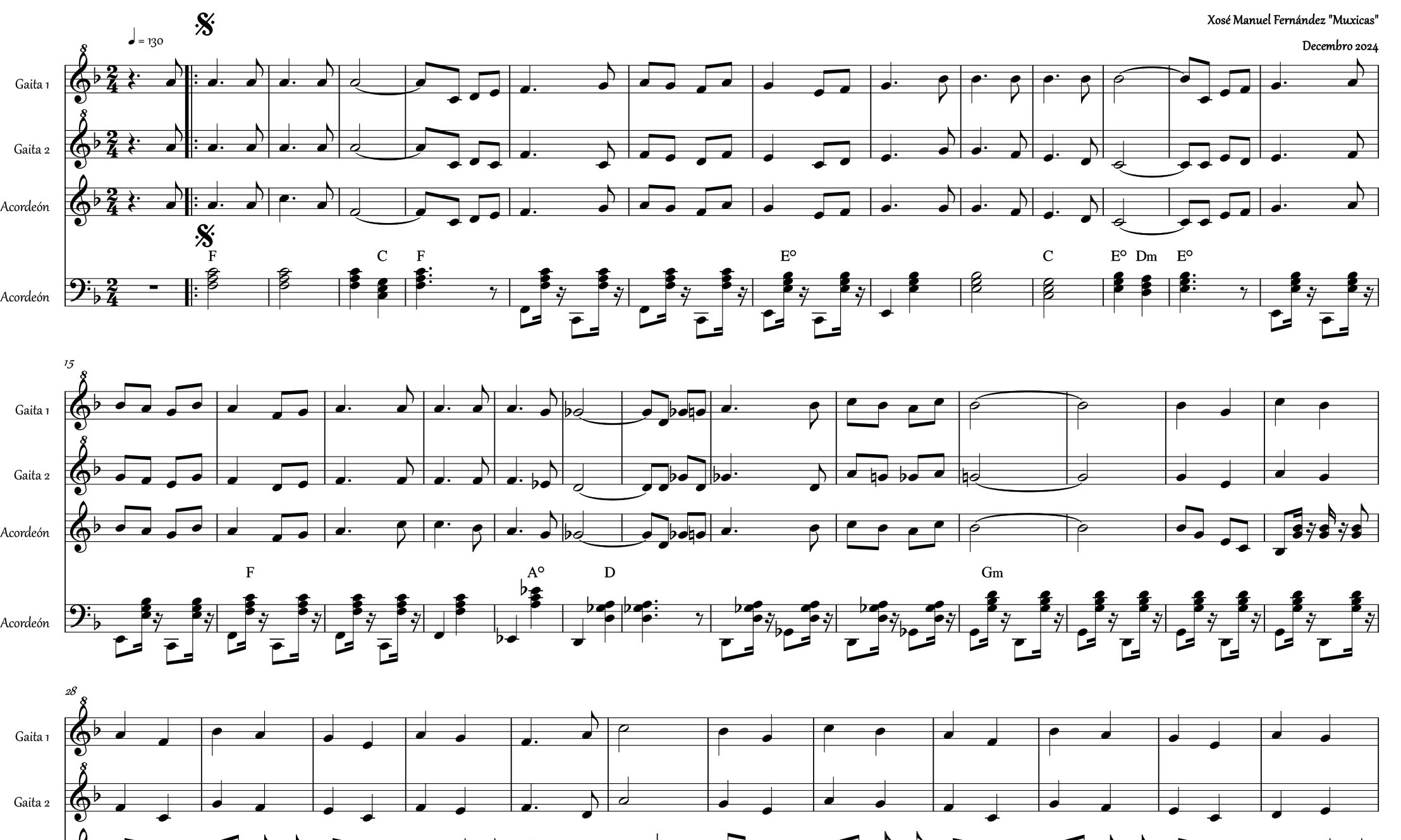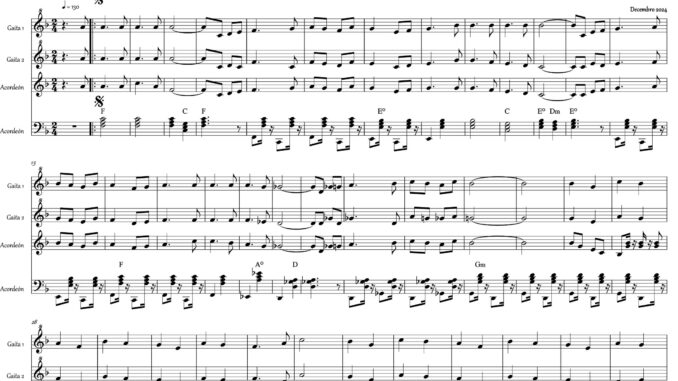 O primeiro tema exposto é un pasodobre que compuxen o pasado ano 2024 para a Rondalla de Reis de Zamáns, da que actualmente son director. “BATE FORTE”.