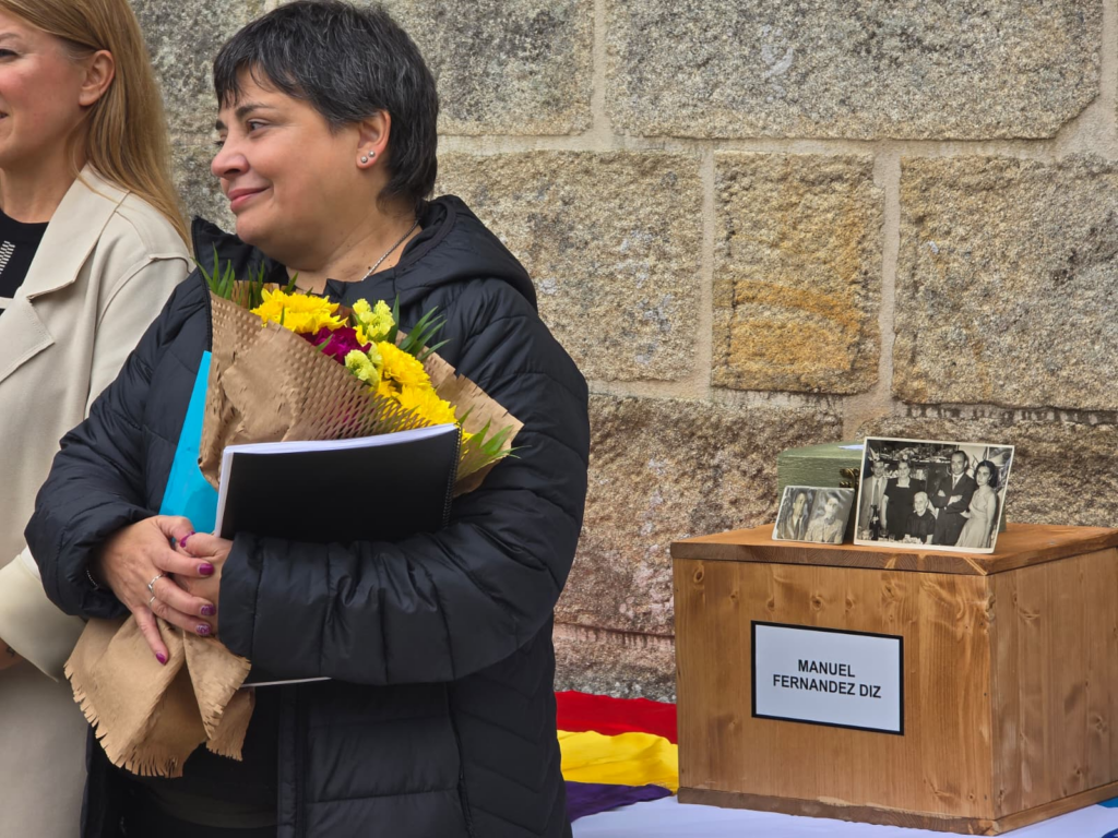 Gachi Fernández trouxo as fotos dos pais e irmáns de Manuel para que tamén estivesen presentes na entrega dos seus restos.