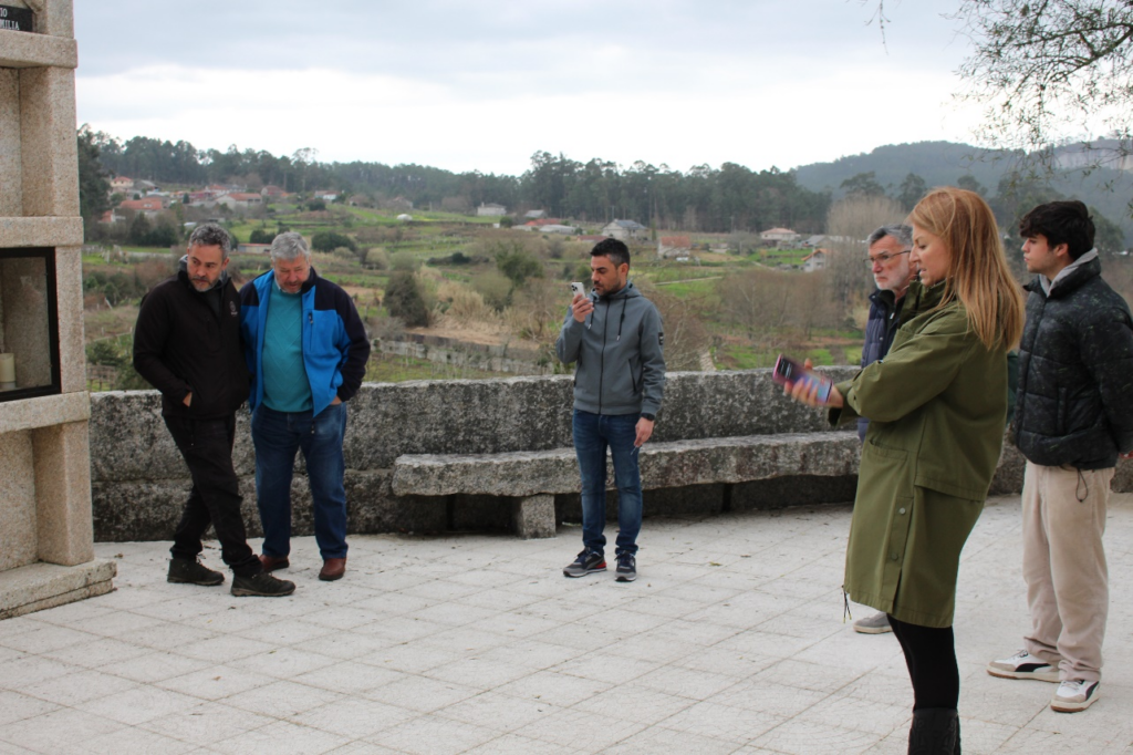 Socios da Comisión co párroco, o arqueólogo, a alcaldesa e concelleiro de Cultura de Salceda reunidos no adro da igrexa para axendar a II Fase de exhumación da Foxa de Soutelo (Salceda de Caselas), // H.P.